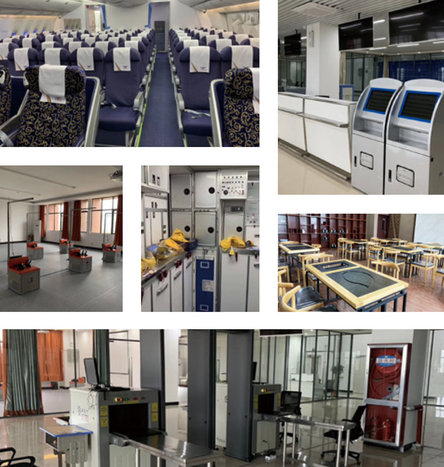 6、民航服务实训类课程:客舱服务实训、民航地面服务实训、民航应急训练实训等。