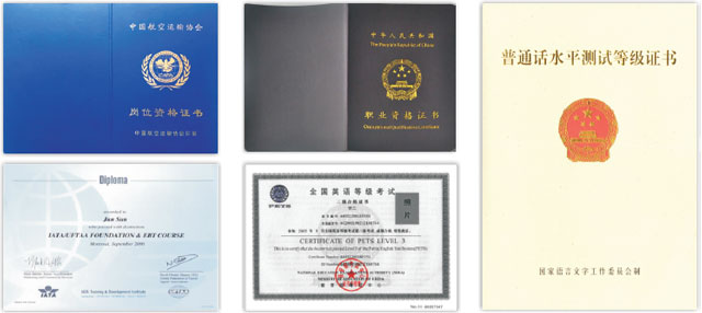 (2)可根据所学专业,参加相关部门或行业组织的考试,成绩合格,可取得相应的职业资格证书,如公共英语三级、普通话等级证书、安检证书、民航客运证、急救证、海员证书、礼仪证书、茶艺证书、民航客舱乘务员培训合格证等。