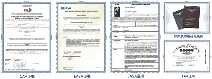 CAA证书、EASA证书、FAA证书、民用航空维修员执照等。