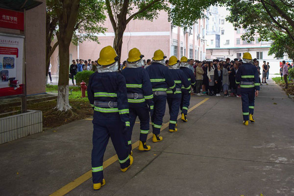 此次消防疏散演练还模拟了高楼起火并存在人员被困的火灾现场。火灾发生后,学校消防车迅速赶到,消防站工作人员快速完成施水灭火等营救措施,与现场指挥人员紧密配合,在最短时间内救出伤员。整个过程控制在8分钟左右,参与演练活动的所有师生成功被疏散到安全地点。