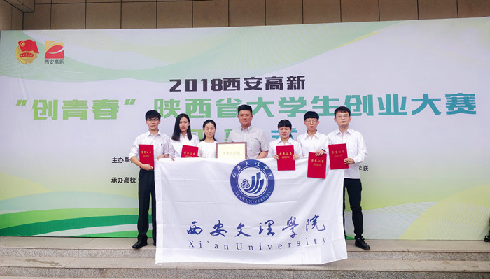我校团委成立大赛工作领导小组,积极开展大赛组织工作,选聘校内外导师进行指导,邀请“创青春”评委开展校内培训,按照学院自评、校内外专家盲审相结合的原则开展校内选拔工作,共收到全校12个学院的100余项作品。依据“创青春”大赛规则,最终选拔推荐18项作品代表学校参加2018年西安高新“创青春”陕西省大学生创业大赛。经省赛书面盲审及终审答辩环节,其中7项作品入围终审决赛并取得优异成绩:金奖1项,银奖1项,铜奖5项,学校荣获“优秀组织奖”。其中由艺术学院李芳、团委武文斌老师指导,杨雪等6位同学完成的作品《丝路重宝》获得金奖;由经济管理学院李建老师指导,杨江南等8位同学完成的《带Dai校园服务平台》荣获银奖;经济管理学院学院《CET农村教育有限公司》、《基于“互联网+”的大学生性健康教育》、机械与材料工程学院《西安众伙网络科技有限公司》、师范学院《心世介》、学前教育学院《学前儿童定向运动》荣获铜奖。