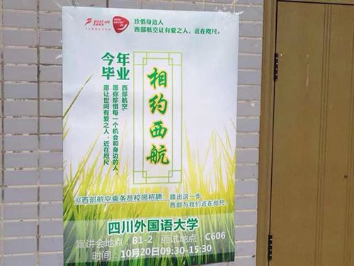 10月中旬过后,海南航空,西部航空陆续来到我校进行宣讲,招聘活动,我校航空项目学生也积极参与到了招聘活动中。