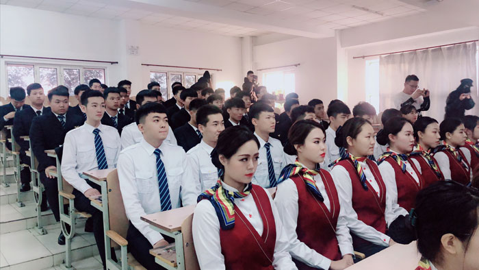 近日,哈尔滨广厦学院举行航空服务专业学生授服仪式。仪式上,学院领导为全体学生授服,认真为学生整理制服。随后,空中乘务专业全体同学进行庄重宣誓。本次授服仪式的成功举办,进一步加深了校企双方的紧密合作,对今后强化专业建设起到积极的推动作用。
