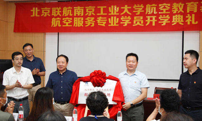 2020年8月30日,北京联航南京工业大学航空教育基地揭牌暨开班典礼在南京工业大学举行。南京工业大学副校长李世收、北京民用联合航空有限公司副总经理马少红、南京工业大学继续教育学院院长方建强、北京民用联合航空有限公司培训部主任徐磊等领导出席会议。首届招生的59名航空服务专业学员及北联航的工作人员参加了揭牌仪式并举行了开班典礼。揭牌仪式和开班典礼由南京工业大学继续教育学院副院长刘建东全程主持。